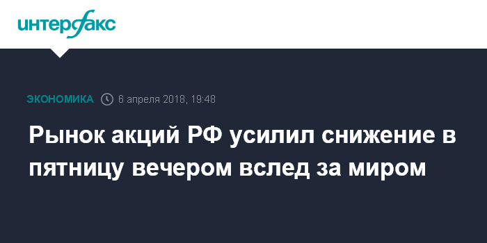 Рынок акций РФ усилил снижение в пятницу вечером вслед за миром