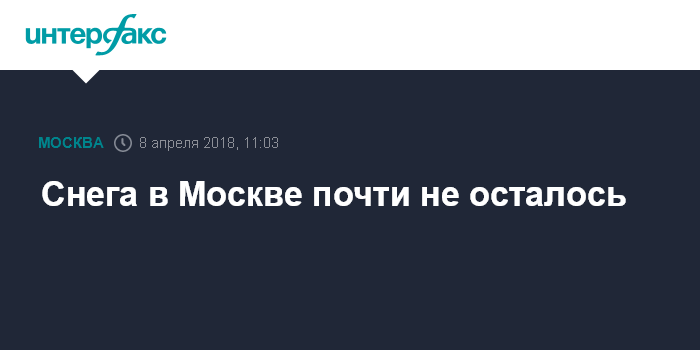 Москва. 8 апреля. INTERFAX.RU - Благодаря теплой погоде, установившейся в первые дни апреля, снег в Москве в первые практически полностью растаял, сообщили "Интерфаксу" в столичном метеобюро в воскресенье.