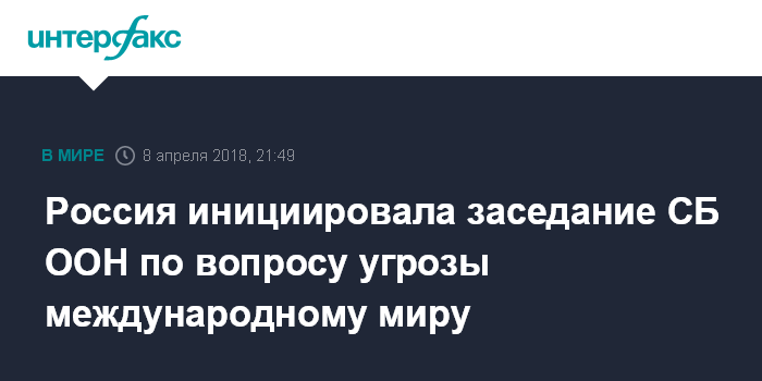 Ранее британское постпредство при ООН сообщило, что Великобритания, Франция, США, а также ряд непостоянных членов СБ попросили провести заседание Совета, чтобы обсудить данные о возможной химатаке в сирийском городе Дума.