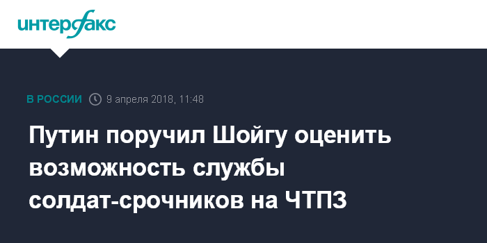 Путин поручил Шойгу оценить возможность службы солдат-срочников на ЧТПЗ