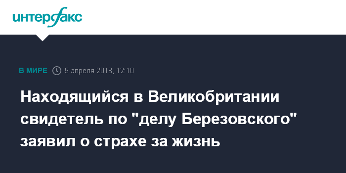 Находящийся в Великобритании свидетель по "делу Березовского" заявил о страхе за жизнь