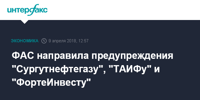ФАС направила предупреждения "Сургутнефтегазу", "ТАИФу" и "ФортеИнвесту"