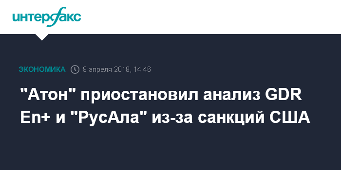 "Атон" приостановил анализ GDR En+ и "РусАла" из-за санкций США