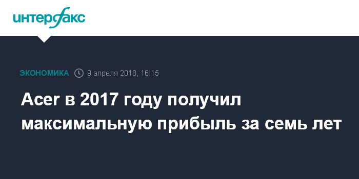 Москва. 9 апреля. INTERFAX.RU - Тайваньский производитель электроники Acer по итогам 2017 года получил максимальную чистую прибыль за последние семь лет.