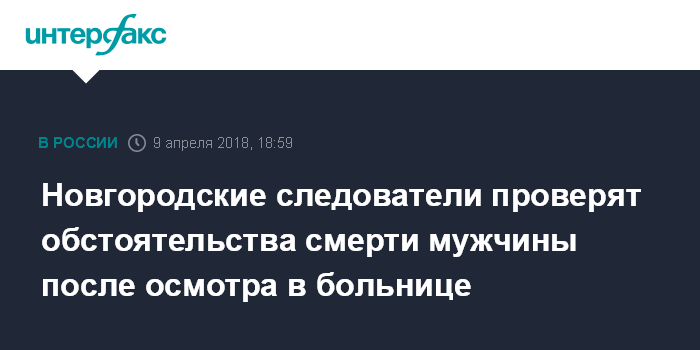 "Тело горожанина 1962 года рождения было обнаружено 2 апреля в Великом Новгороде неподалеку от одной из городских клиник. Предварительно, после осмотра врачами приемного покоя этой больницы мужчина самостоятельно покинул клинику. Спустя некоторое время он был найден неподалеку от больницы без признаков жизни", - сказал собеседник.