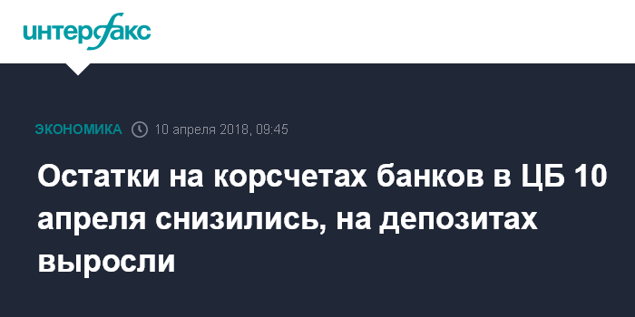 Остатки на корсчетах банков в ЦБ 10 апреля снизились, на депозитах выросли