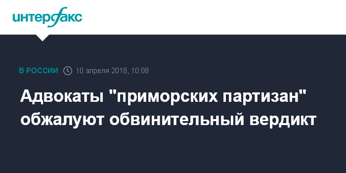 Москва. 10 апреля. INTERFAX.RU - Представители защиты так называемых "приморских партизан", которым во вторник присяжные вынесли обвинительный вердикт, намерены обжаловать это решение.