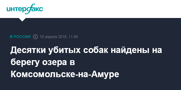 Москва. 10 апреля. INTERFAX.RU - Зоозащитники в Комсомольске-на-Амуре обнаружили несколько десятков убитых домашних и уличных собак, сообщила агентству "Интерфакс" руководитель общественной организации защиты животных "Зооспас" Елена Асташова.