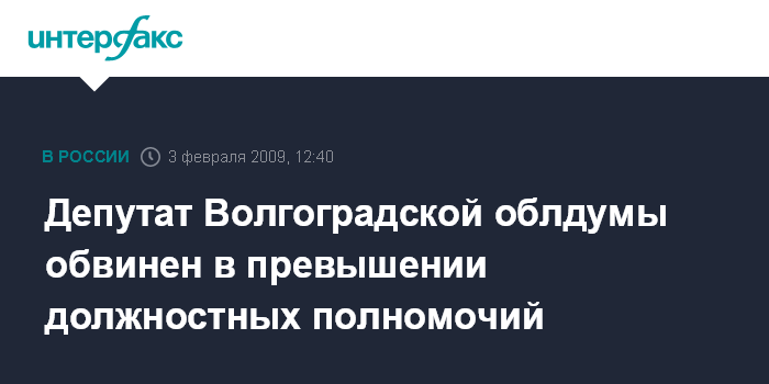 Депутат Волгоградской облдумы обвинен в превышении должностных полномочий
