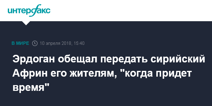 Эрдоган отметил, что Африн будет передан его жителям, "когда придет время".