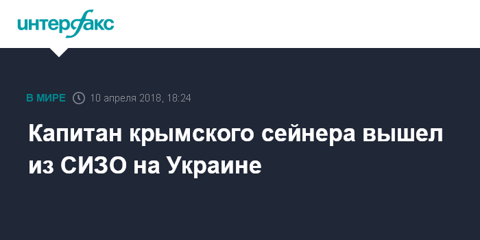 "Капитан освобожден из СИЗО. Сейчас находятся в полиции для оформления электронного браслета, далее - на допрос в СБУ, (позже - ИФ) в больницу проверить здоровье", - сказала "Интерфаксу" представитель судовладельца - керченского рыбколхоза имени Первого мая - Анна Шевелева.