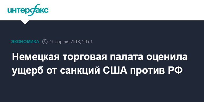 Москва. 10 апреля. INTERFAX.RU - Новые санкции США в отношении России могут обойтись немецкой экономике в ближайшие годы в несколько миллиардов евро, заявляют в Российско-германской внешнеторговой палате (ВТП).