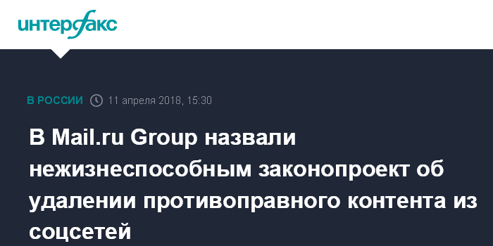 В Mail.ru Group назвали нежизнеспособным законопроект об удалении противоправного контента из соцсетей