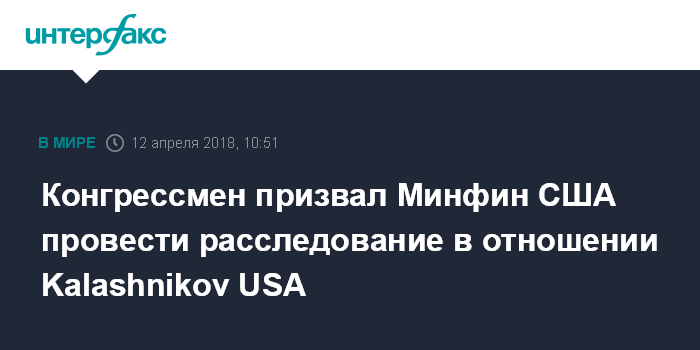 По мнению конгрессмена, Минфину США следует уточнить информацию о том, осуществляло ли предприятие импорт частей для автоматов Калашникова АК-47 из России.