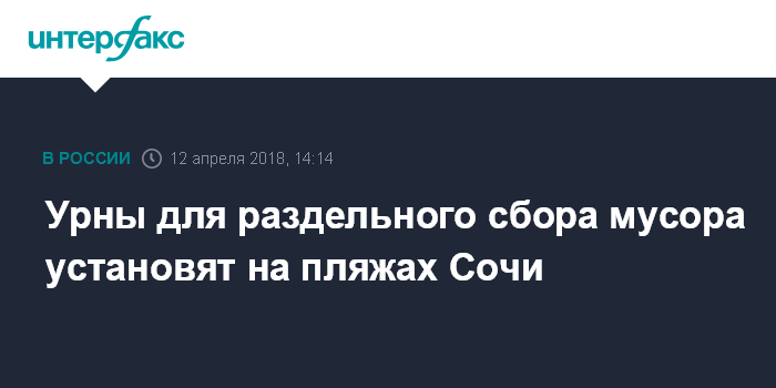 Москва. 12 апреля. INTERFAX.RU - На более 200 пляжах Сочи установят урны для раздельного сбора отходов, сообщили агентству "Интерфакс" в пресс-службе администрации города в четверг.