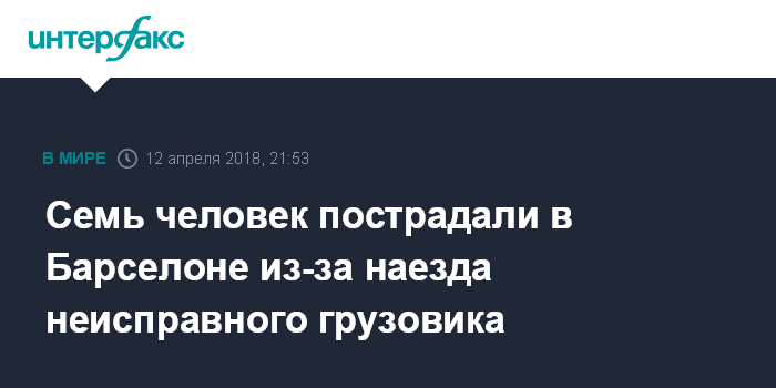 Семь человек пострадали в Барселоне из-за наезда неисправного грузовика
