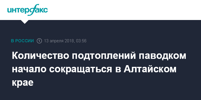 24 марта в связи с ухудшением паводковой ситуации в Алтайском крае был введен режим повышенной готовности, 27 марта - режим ЧС.