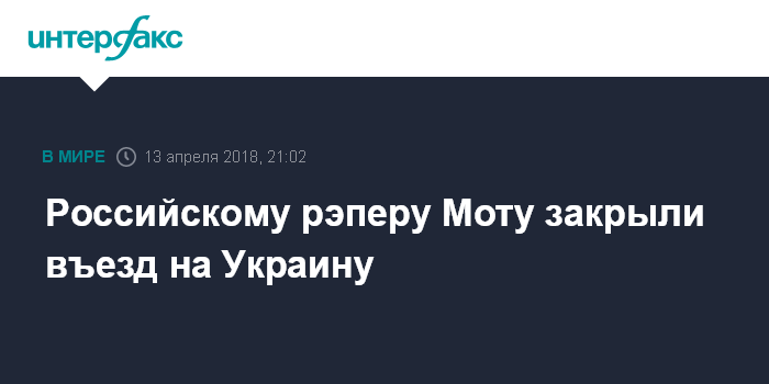Москва. 13 апреля. INTERFAX.RU - Государственная пограничная служба Украины не пропустила российского рэп-исполнителя Матвея Мельникова (сценический псевдоним Мот) из РФ на территорию Украины, сообщил помощник главы погранслужбы Олег Слободян.