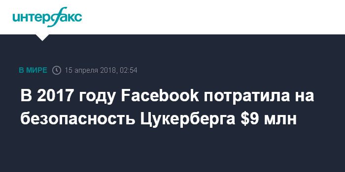 Москва. 15 апреля. INTERFAX.RU - В 2017 году Facebook потратила на безопасность своего основателя Марка Цукерберга $9 млн, что в полтора раза больше, чем в 2016 году ($5,8 млн), сообщает в субботу CNN со ссылкой на отчет компании.