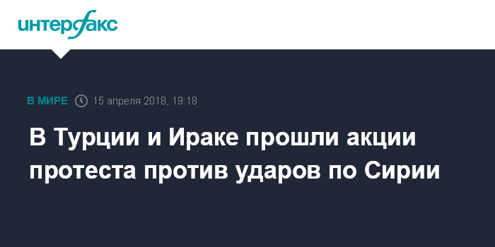 Москва. 15 апреля. INTERFAX.RU - На улицы Стамбула и Багдада вышли протестующие против ударов США, Великобритании и Франции по территории Сирии, передают в воскресенье западные СМИ.
