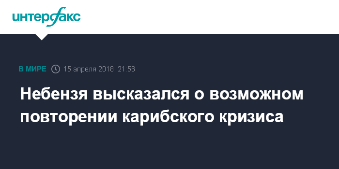 Москва. 15 апреля. INTERFAX.RU - Постпред РФ при ОНН Василий Небензя надеется, что кризис, подобный карибскому, больше не повторится.