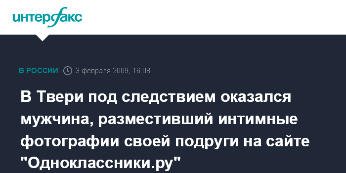 В Твери под следствием оказался мужчина, разместивший интимные фотографии своей подруги на сайте "Одноклассники.ру"