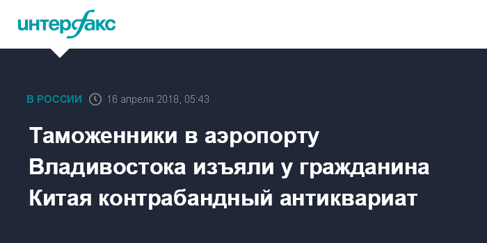 Москва. 16 апреля. INTERFAX.RU - Таможенники в аэропорту Владивостока пресекли нелегальный вывоз в Китай крупной партии культурных ценностей.