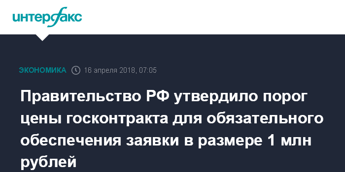 Правительство РФ утвердило порог цены госконтракта для обязательного обеспечения заявки в размере 1 млн рублей