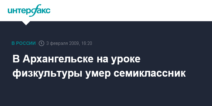 Москва. 3 февраля. INTERFAX.RU - В школе N55 Архангельска во вторник на уроке физкультуры умер подросток, сообщили "Интерфаксу" в пресс-службе городской мэрии.