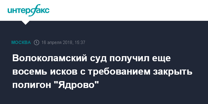 "В суд поступило восемь исковых заявлений от граждан Волоколамского района к ООО "Ядрово". По одному из исков состоится судебное заседание 18 апреля. Истцами по данному иску выступают восемь человек", - сообщила в понедельник "Интерфаксу" пресс-секретарь Мособлсуда Наталья Осипова.