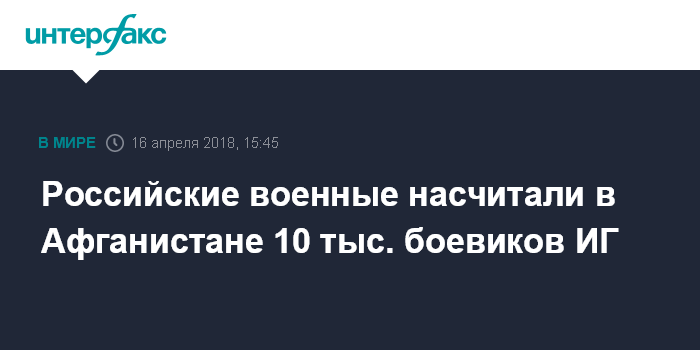 Москва. 16 апреля. INTERFAX.RU - На территории Афганистана в настоящее время находятся около 10 тысяч боевиков, большинство из них состоят в ИГИЛ (запрещенная в РФ террористическая организация), сообщил командующий войсками Центрального военного округа генерал-лейтенант Александр Лапин.