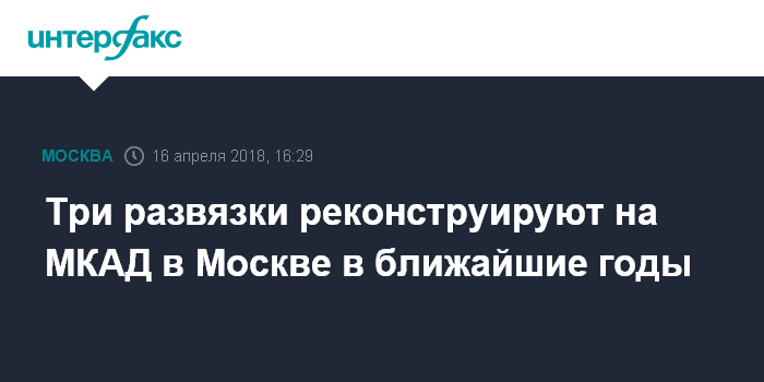 Москва. 16 апреля. INTERFAX.RU - В ближайшие годы планируется реконструировать три транспортные развязки на МКАД. Об этом сообщил в понедельник заместитель мэра Москвы по вопросам градостроительной политики и строительства Марат Хуснуллин.