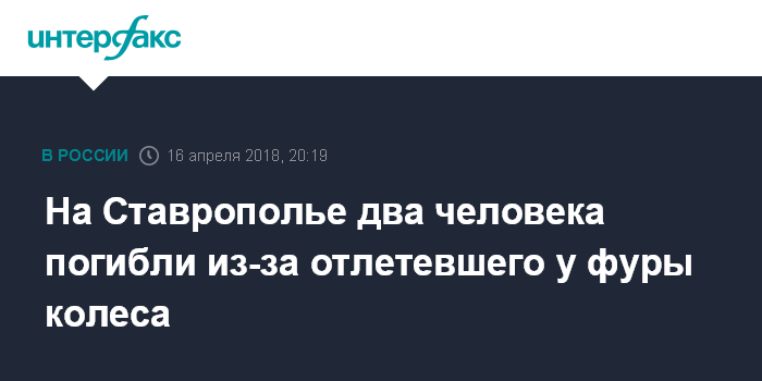 Москва. 16 апреля. INTERFAX.RU - Колесо взорвалось у фуры во время движения по трассе "Кавказ" и отлетело, попав по легковой машине, есть погибшие и пострадавший. Об этом сообщает управление ГИБДД по Ставропольскому краю.