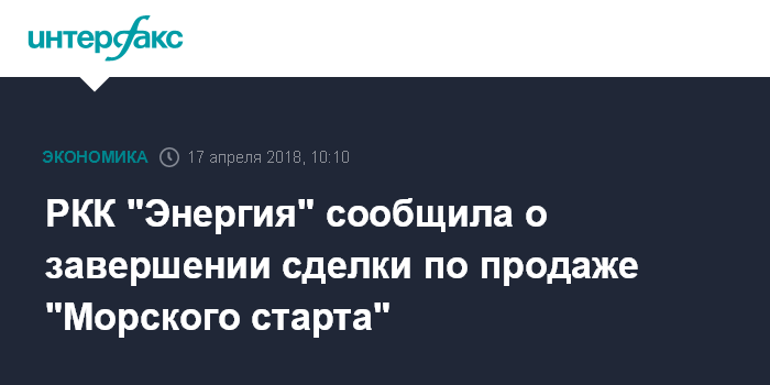 "Сегодня, 17 апреля, завершена сделка по продаже группой компаний "Энергия" активов проекта "Морской старт" S7 Group", - говорится в заявлении корпорации.
