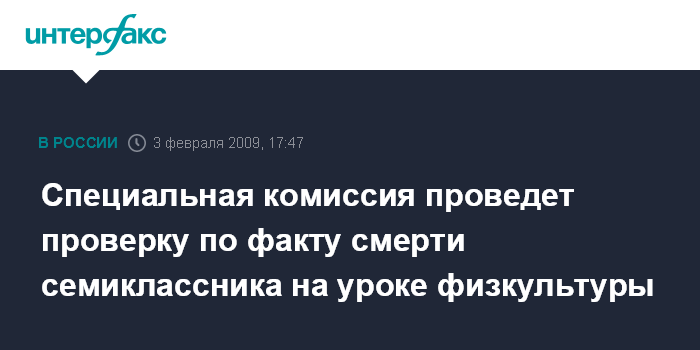 Москва. 3 февраля. INTERFAX.RU - По факту смерти школьника на уроке физкультуры в школе N55 Архангельска будет проведена проверка, сообщили "Интерфаксу" в городской мэрии. "По факту смерти школьника в образовательном учреждении проводится проверка. Кроме того, распоряжением мэра Архангельска Виктора Павленко создана межведомственная комиссия по расследованию произошедшего. В ее рамках будет также работать лечебно-контрольная комиссия, которая проанализирует причины трагической смерти ребенка. Расследование будет проведено и правоохранительными органами", - сказал представитель пресс-службы мэрии.