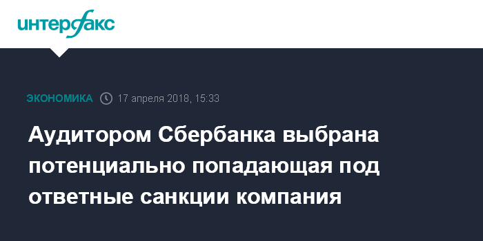 Аудитором Сбербанка выбрана потенциально попадающая под ответные санкции компания