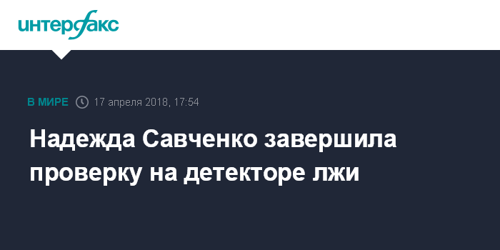 13 апреля была начата судебно-психологическая экспертиза Надежды Савченко с использование полиграфа, но была прервана из-за состояния здоровья арестованной, вызванного голоданием. В итоге депутат согласилась прервать на три дня голодовку, чтобы ее организм был способен надлежащим образом пройти полиграф. Голодовку Савченко возобновила 16 апреля.