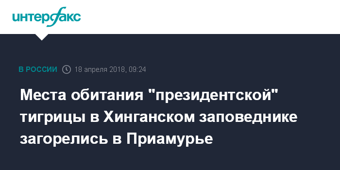 Москва. 18 апреля. INTERFAX.RU - Крупный лесной пожар уже несколько дней бушует в Архаринском районе Амурской области, в том числе в Хинганском заповеднике, где обитает тигрица Илоны.