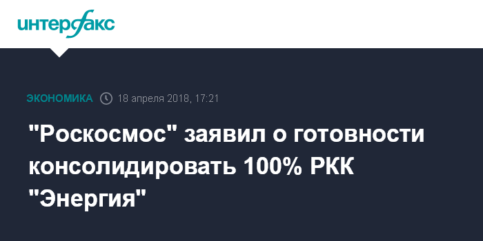 "Роскосмос" заявил о готовности консолидировать 100% РКК "Энергия"