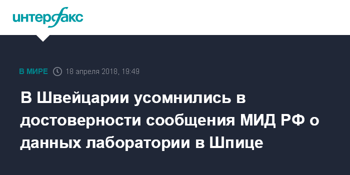 В Швейцарии усомнились в достоверности сообщения МИД РФ о данных лаборатории в Шпице