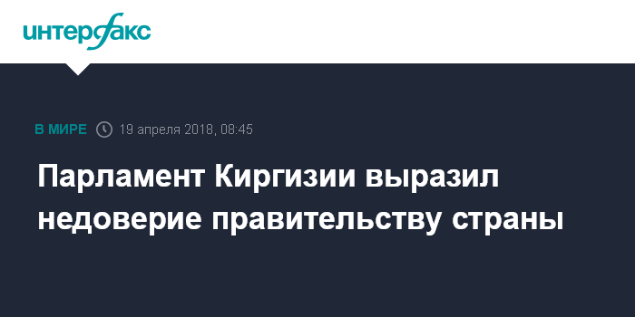 "Парламент Киргизии впервые выразил недоверие правительству, причиной стали многие промахи кабмина, в частности с реализаций ряда важных проектов, о чем неоднократно заявляла парламентская оппозиция", - сказал собеседник агентства.