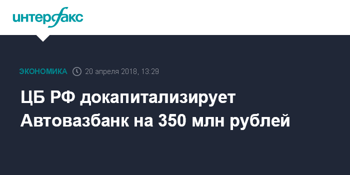 ЦБ РФ докапитализирует Автовазбанк на 350 млн рублей