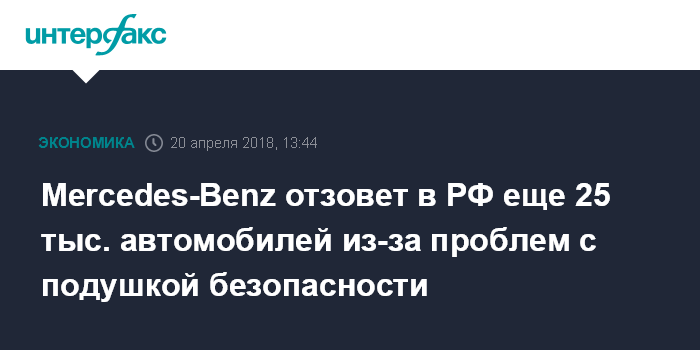 Mercedes-Benz в марте уже отзывал в РФ около 16,8 тыс. автомобилей различных моделей также из-за проблем с подушкой безопасности водителя.