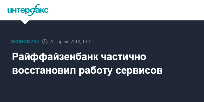 Москва. 20 апреля. INTERFAX.RU - Райффайзенбанк частично восстановил работу некоторых сервисов, но по-прежнему невозможно совершить операции в банкоматах.