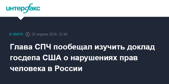 "Но что-то мне подсказывает, что при нынешних отношениях между Россией и США ждать особенной объективности от доклада Госдепа не следует. Но изучить его обязательно надо", - добавил глава СПЧ.