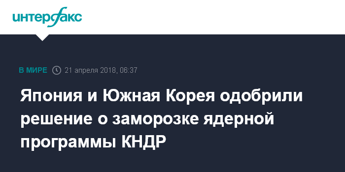 Москва. 21 апреля. INTERFAX.RU - Власти Японии и Южной Кореи приветствуют решение лидера КНДР Ким Чен Ына о заморозке ядерных и ракетных испытаний в стране, сообщает информагентство Associated Press.