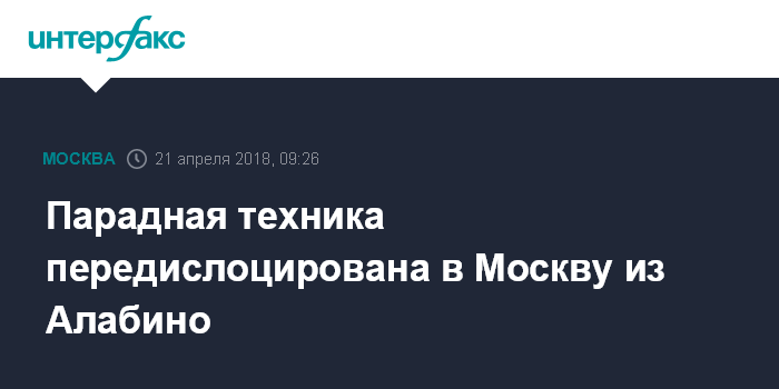 Москва. 21 апреля. INTERFAX.RU - Механизированная колонна, принимающая участие в параде Победы на Красной площади 9 мая, передислоцирована с тренировочной площадки в подмосковном Алабино на временную площадку в Москве, расположенную на улице Нижние Мневники в Северо-Западном округе столицы, сообщает в субботу департамент информации и массовых коммуникаций Минобороны РФ.
