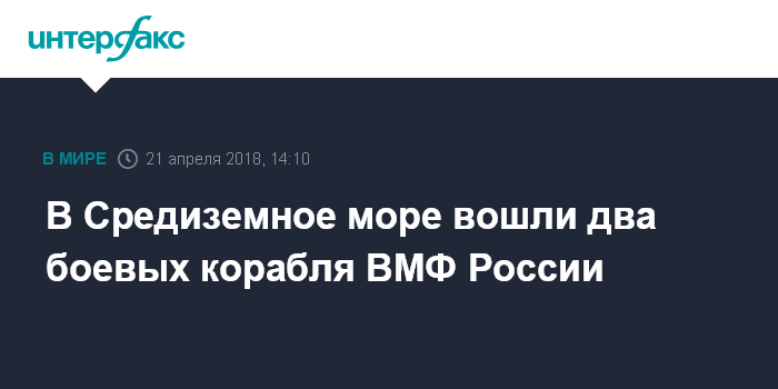 Москва. 21 апреля. INTERFAX.RU - Сторожевые корабли ВМФ России "Пытливый" и "Сметливый" в субботу вошли в акваторию Средиземного моря, сообщили стамбульские информационные порталы, публикующие фотографии их прохождения через пролив Босфор и Мраморное море.