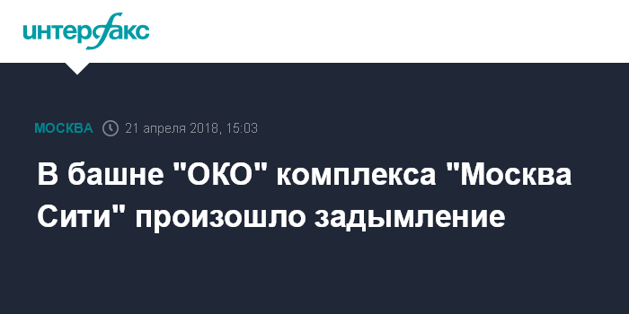 В башне "ОКО" комплекса "Москва Сити" произошло задымление