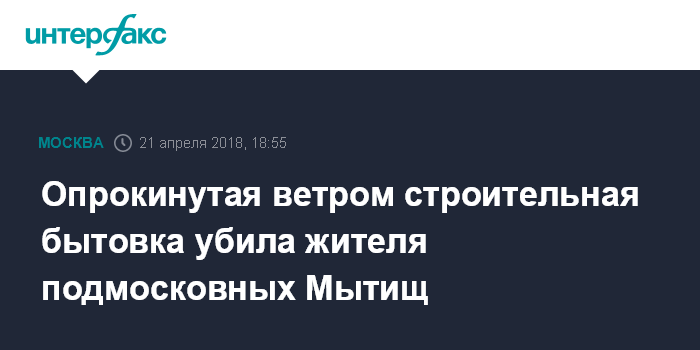 "Сильный ветер в Мытищах опрокинул бытовку на мужчину. Он погиб на месте", - сказал собеседник агентства.